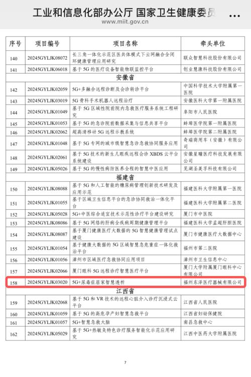 經(jīng)查,本次全國優(yōu)秀項目中沒有第二家腎臟病或尿毒癥診療項目入選、福建省內(nèi)也沒有第二個5G+遠(yuǎn)程治療方向的入選項目。